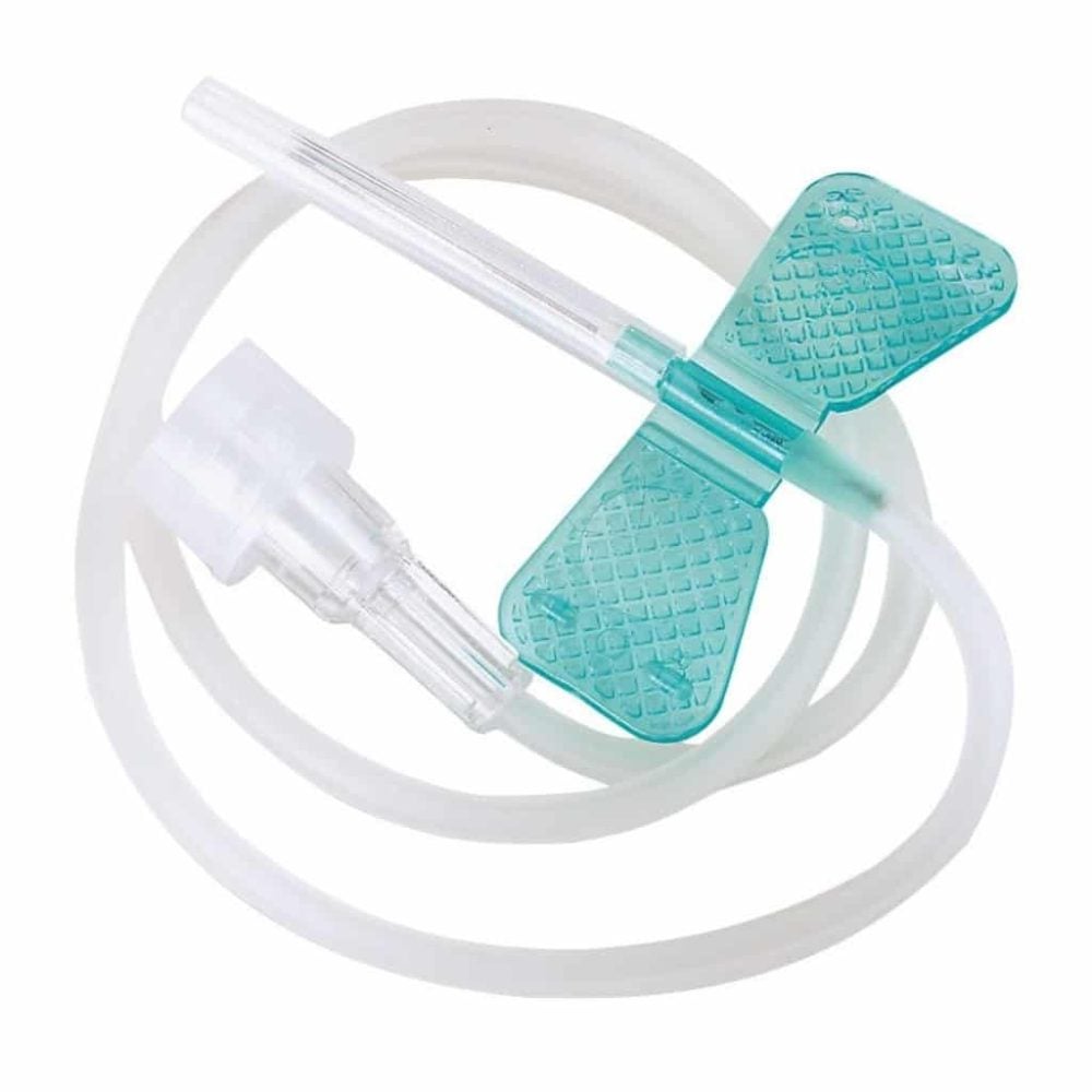 On utilise une aiguille épicrânienne pour tout type de perfusion de courte durée. L’aiguille épicrânienne se compose d’une aiguille à ailettes, raccordée à une tubulure flexible et un raccord Luer-Lock sur lequel se trouve un obturateur étanche.
